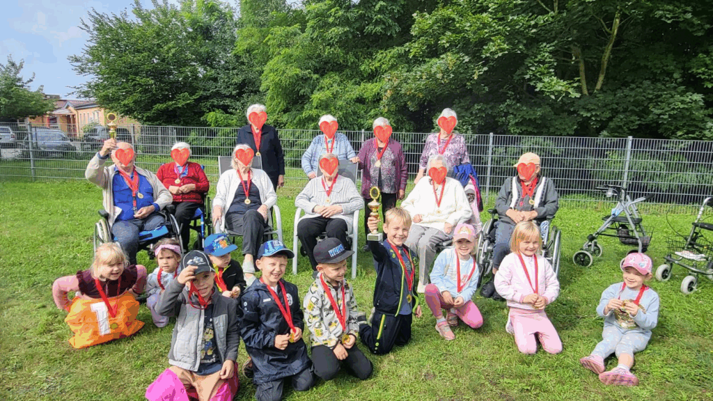 Am 05.08.2025 fand ein wunderschöner Tag voller Bewegung, Lachen und Gemeinschaft statt: Kinder aus der AWO Kita „Pusteblume“ und Bewohnerinnen aus dem AWO Seniorenzentrum „Haus am Wedenberg“ bildeten Teams, tobten sich aus und hatten jede Menge Spaß. Am Ende gab es strahlende Gesichter bei der Pokal- und Medaillenverleihung – für unsere kleinen und großen Heldinnen!